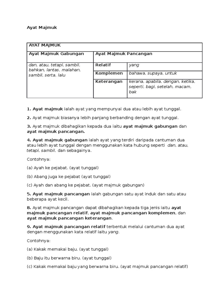 Ayat Tunggal Dan Ayat Majmuk Pdf